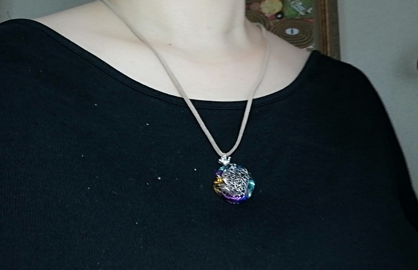 おっきなハートのチャーム入り ハートの後ろのワイヤーやパールモチーフの色が透け 背景をカラフルに色どる 良いコトありそうな気分になるペンダント♪ シンプルなお洋服の上から着けても印象的 ペンダントトップ シルバー色王冠込み 約3.3センチ 重さ約8g オルゴナイト部分 幅約2.7センチ 厚さ約0.9センチ 革ひもの長さ約69センチ お好みの長さでお使いください 定形外郵便 オルゴナイトもペンダントもハンドメイドです 一つ一つ丁寧にお作りしていますが、キズ、歪み、色ムラ等も多少あります 画像をよくご確認のうえ、 ハンドメイドにご理解ご納得いただける方のみご検討ください