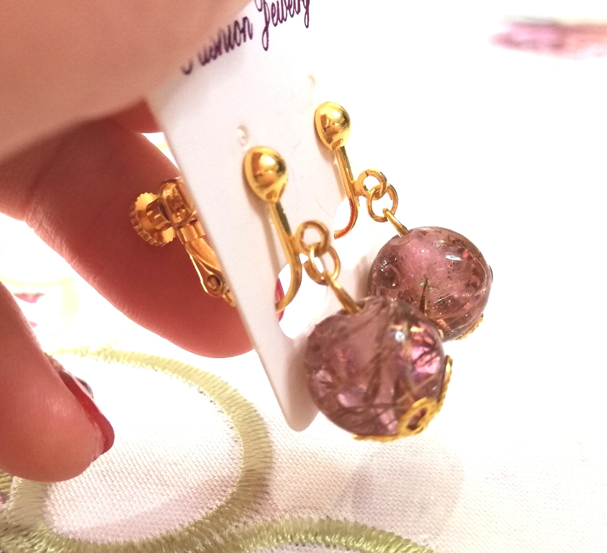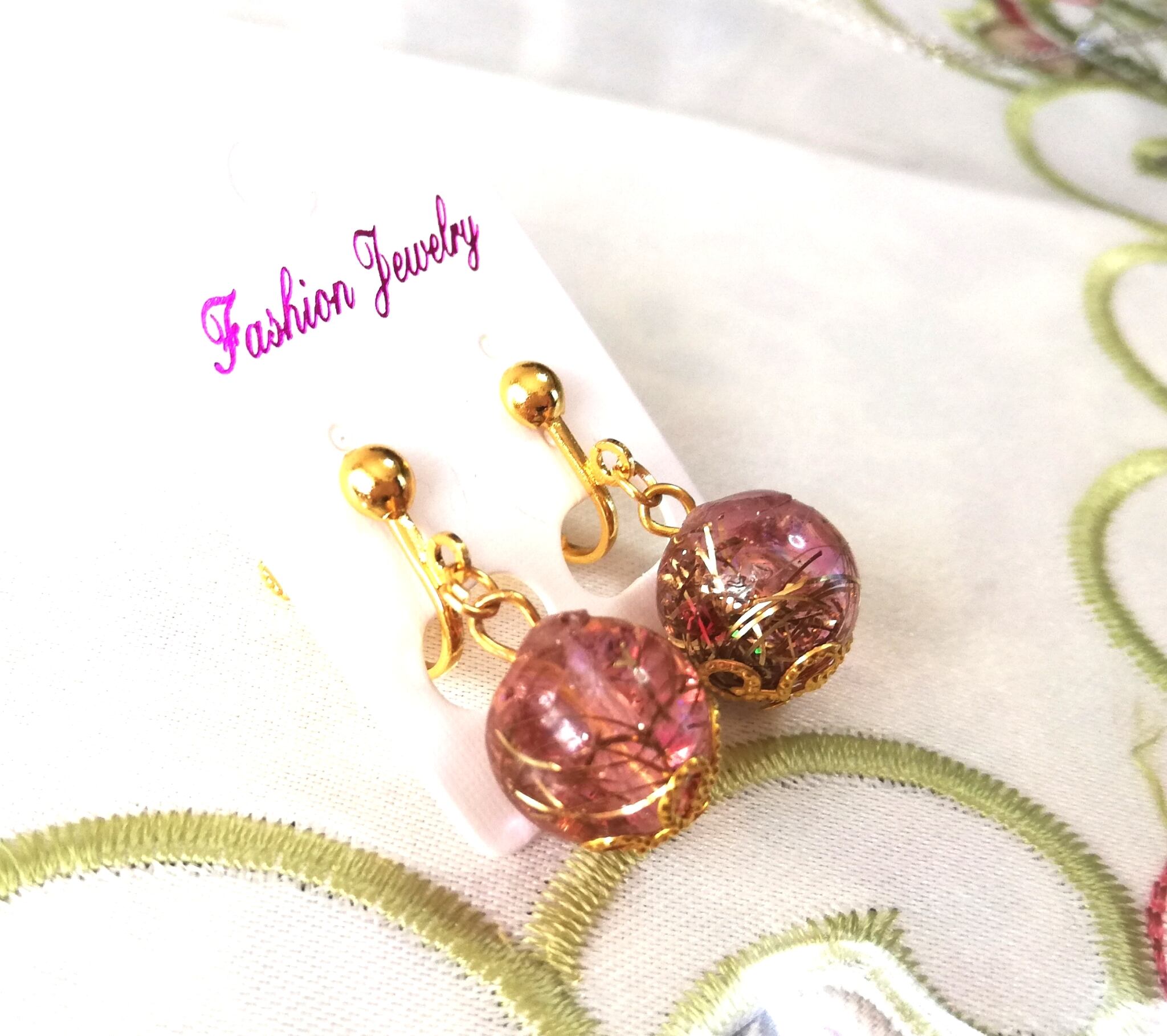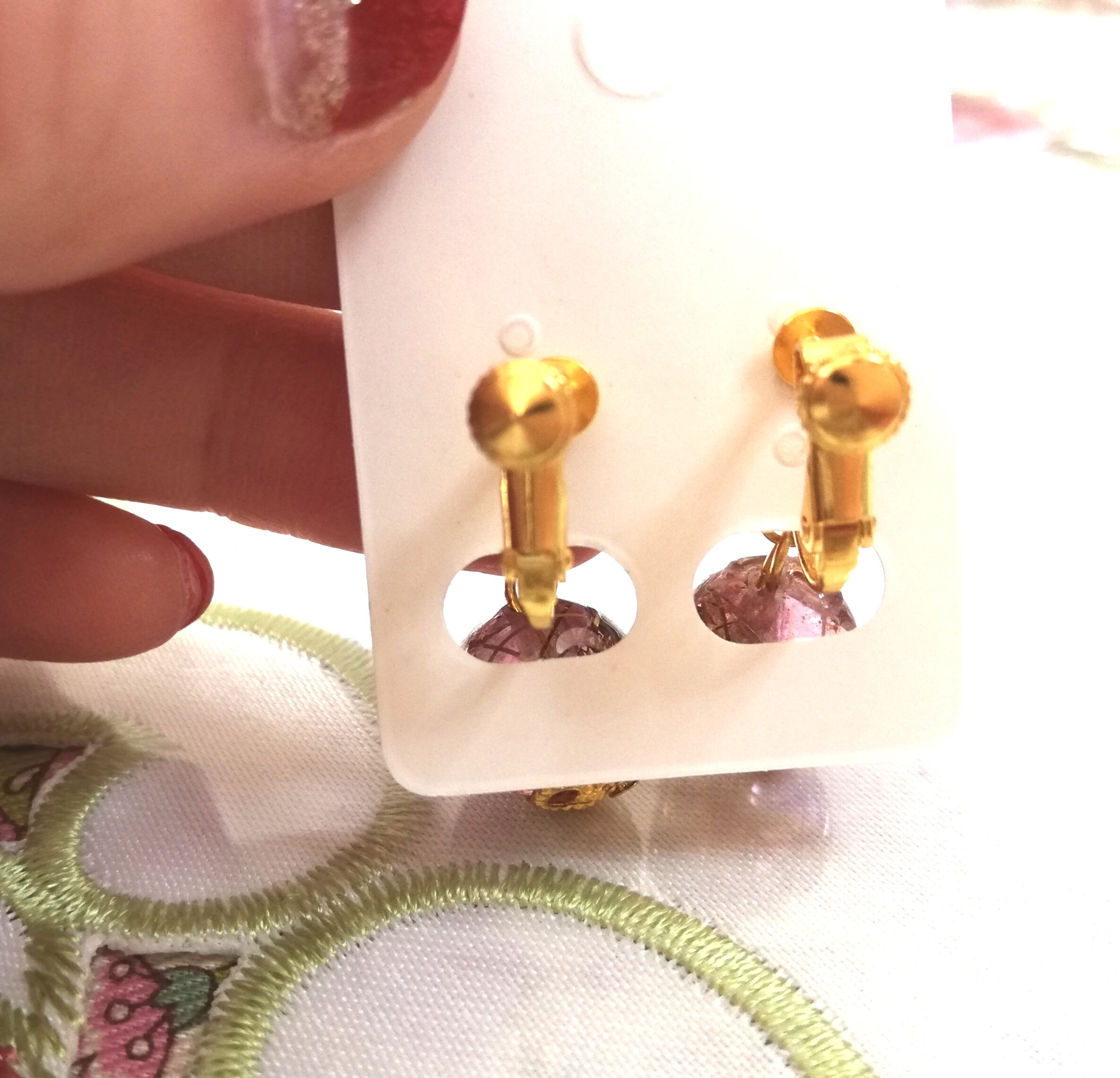珍しいオルゴナイトのイヤリング 揺れる優しいピンク色がお顔色を明るく華やかに見せます ピンクで恋愛運アップ! ゴールドの金属&水晶入り ポジティブな明るい印象のイヤリング オルゴナイト部分は直径約1.2cm 全長約2.6cm 片耳約2.5g 金具はゴールドカラーネジバネ色 定形外郵便 幸運を引き寄せる オルゴナイトで作った1点物のイヤリングです オルゴナイトもイヤリングもハンドメイドです 小さなキズ、歪み、色ムラ等も多少あります 画像をよくご確認のうえ、ハンドメイドにご理解ご納得いただける方のみご検討ください