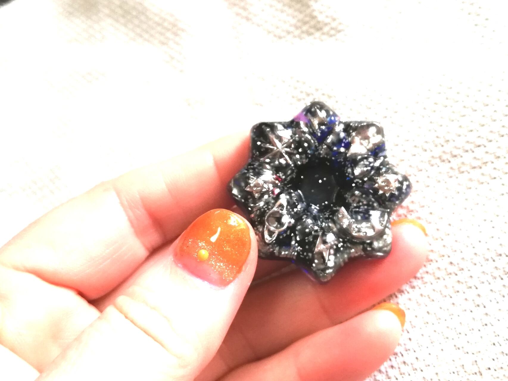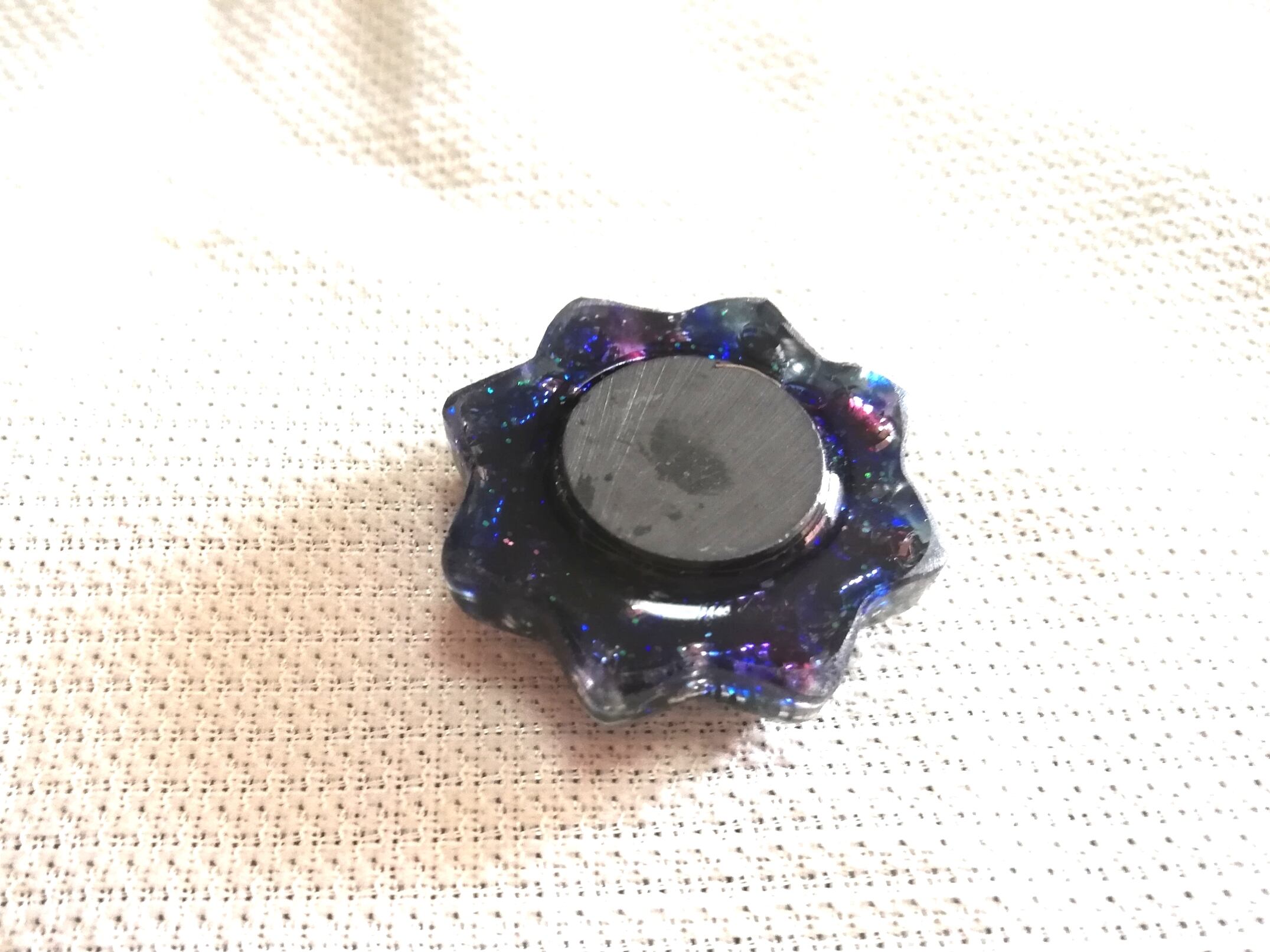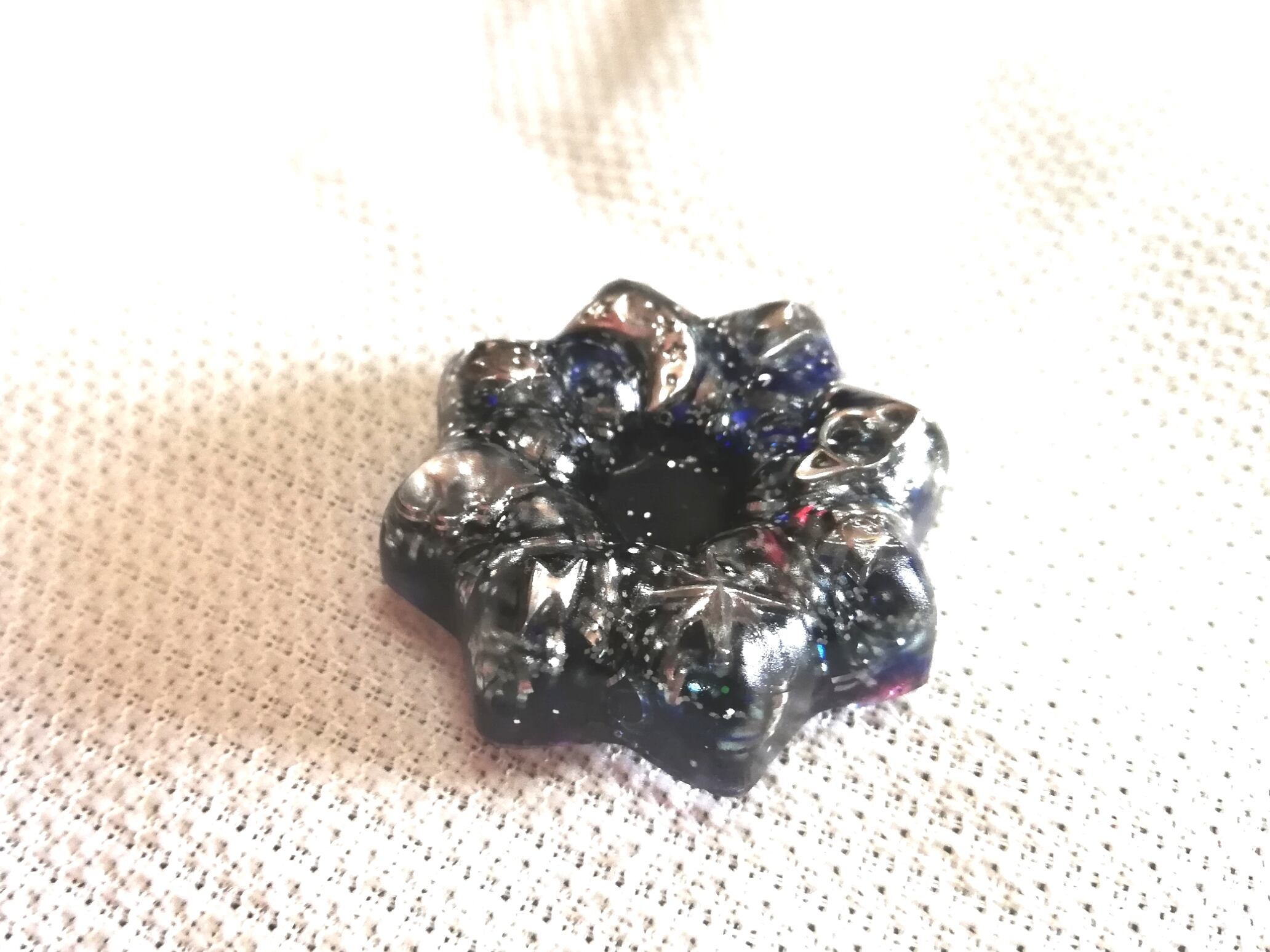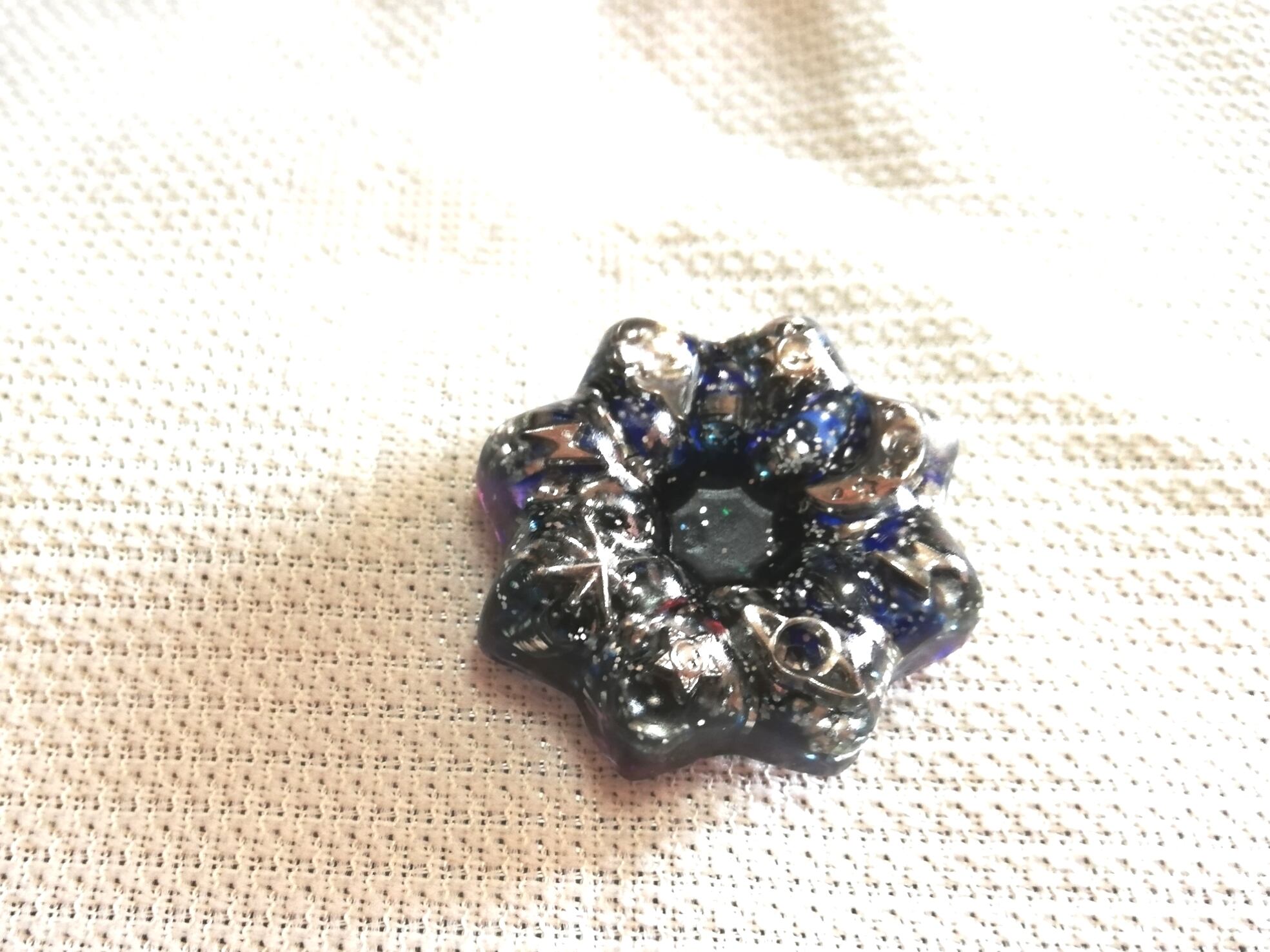 宇宙チャーム入りオルゴナイト マグネット 角度によって紫や紺にも見える下地に シルバーのチャームが宇宙を想像させます マグネット付きなので 冷蔵庫など電化製品の電磁波予防にも使いやすいです 職場の人間関係にお疲れの方 デスクに余計な物を置けない方は 引き出しの中や、ロッカーの扉の内側にお使いください マグネット結構強力です! オルゴナイト部 直径約3.9cm 厚み 約1㎝ マグネット部 厚み約1.2cm 重さ約17.5g 定形外郵便 オルゴナイトはハンドメイドです 小さなキズ、歪み、色ムラ等も多少あります 画像をよくご確認のうえ、ハンドメイドにご理解ご納得いただける方のみご検討ください