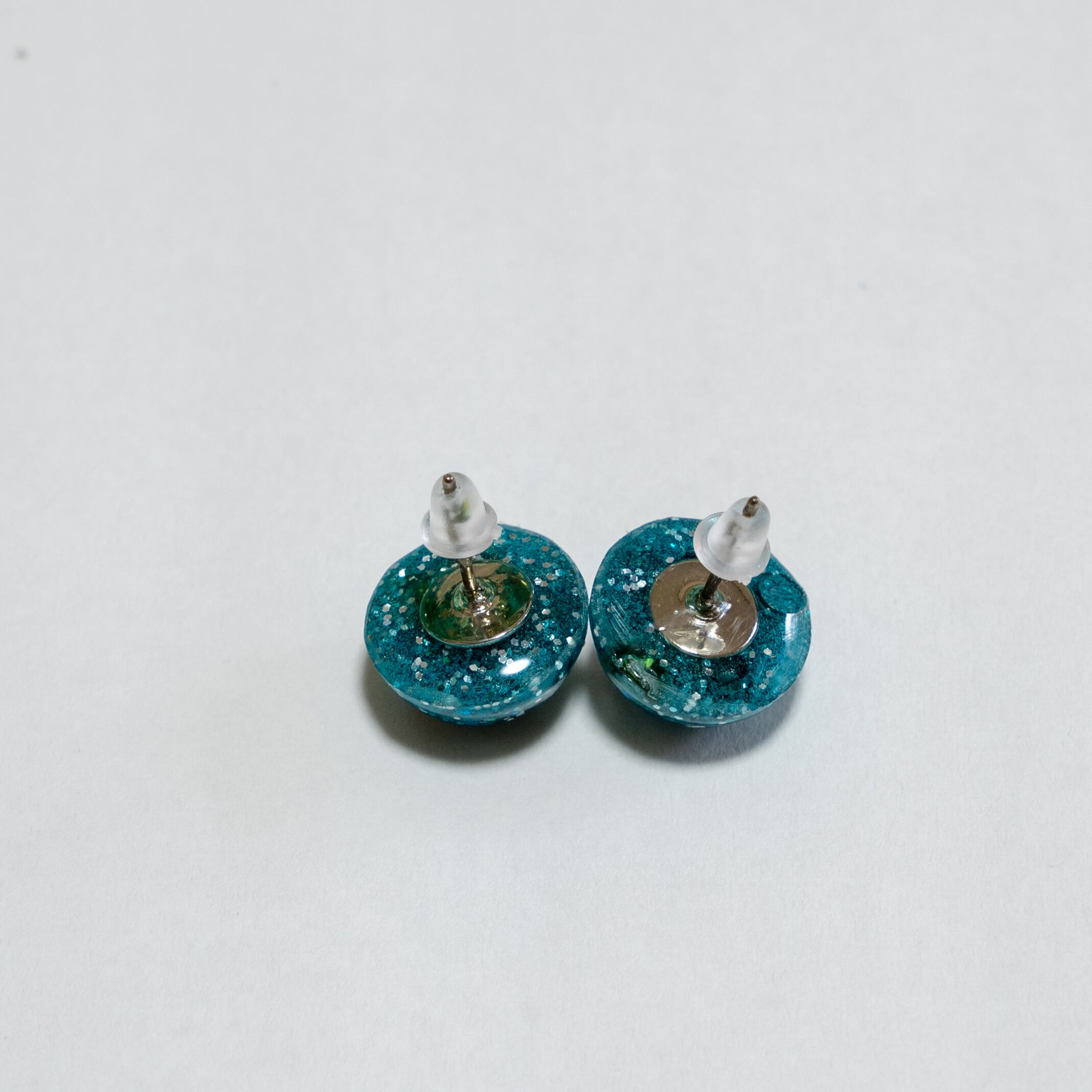 コロンとした可愛い半球型のオルゴナイトピアス 綺麗なターコイズブルーにシルバーのラメ入り キリっとした落ち着きが欲しい時にオススメです ターコイズは第5のチャクラを活性させるカラー。心を浄化してリフレッシュさせてくれる色。また人の想いを現実にしてくれる色でもあります。 オルゴナイト部直径約12㎜ 厚さ約7㎜ 重さ約0.8g(片耳) シルバー色のポストと透明キャッチ付 定形外郵便 オルゴナイトもピアスもハンドメイドです 小さなキズ、歪み、色ムラ等も多少あります 画像をよくご確認のうえ、ハンドメイドにご理解ご納得いただける方のみご検討ください