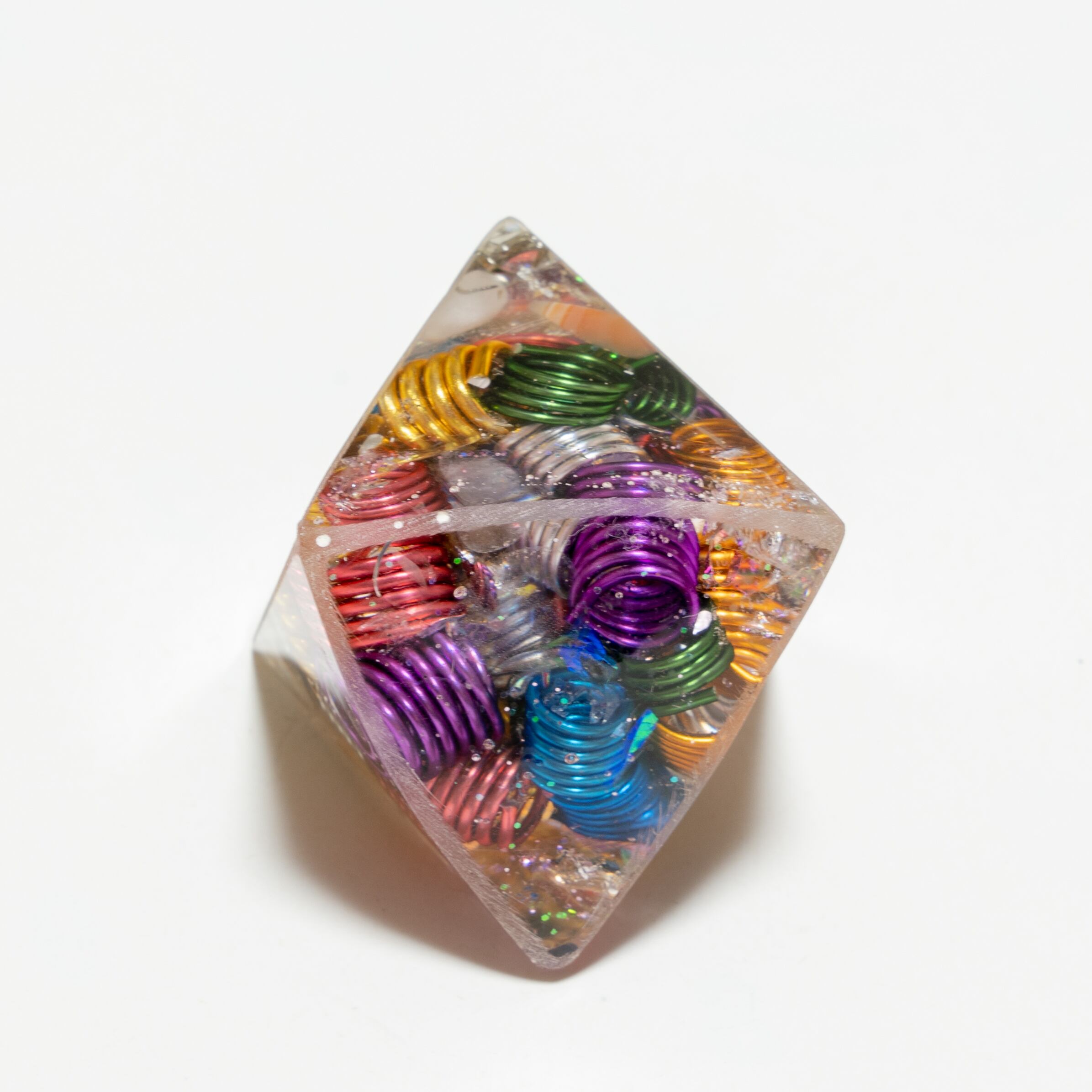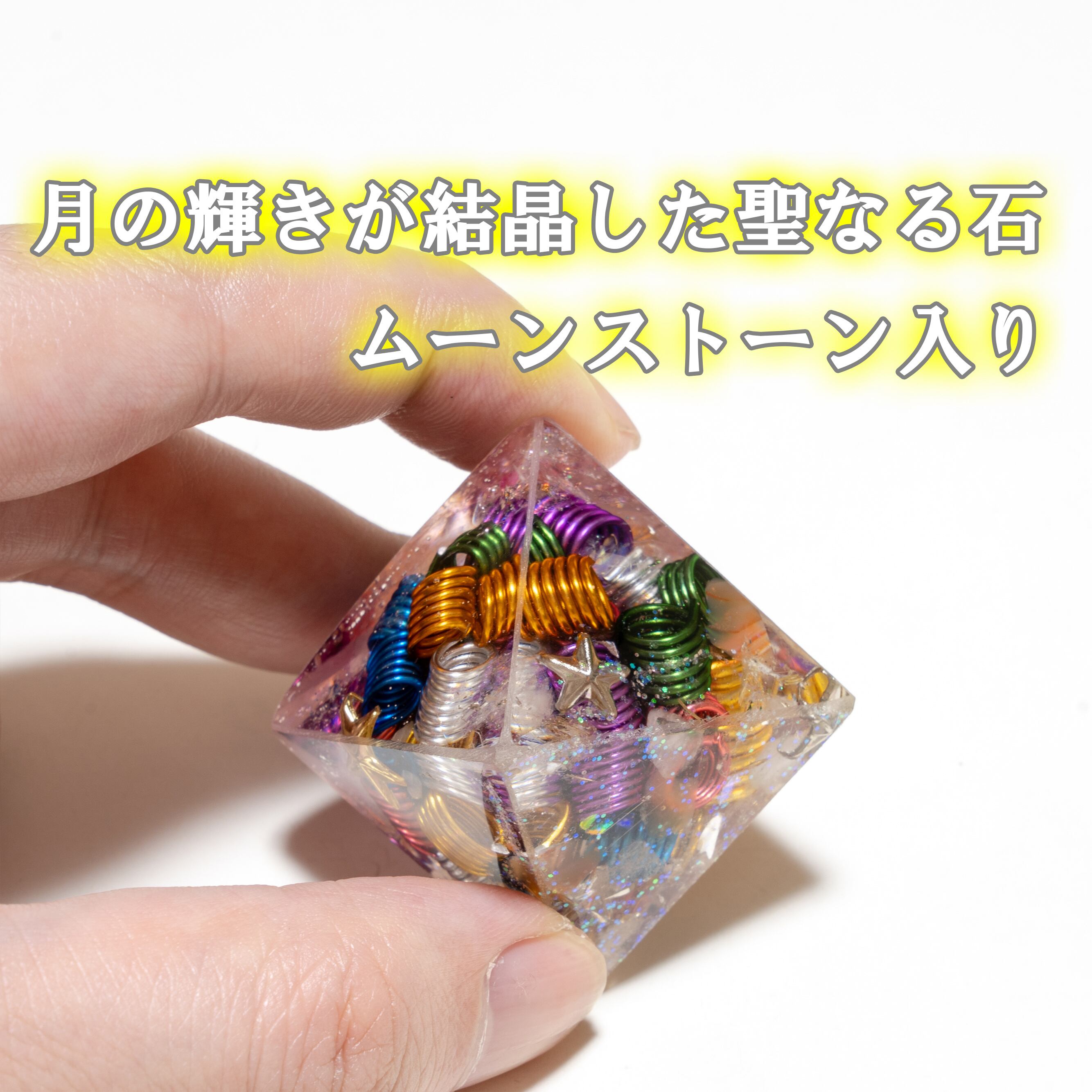 ピラミッドを二つ合わせたような珍しいデザインです。ムーンストーン入り カラフルな金属がぎっしり入ったパワータイプ 【ムーンストーン】6月の誕生石 『愛を伝える石』とも言われ、持ち主を優しく大らかな愛情で満たしてくれるといわれています。愛する人との出会いと恋愛を成就させ、幸せな結婚そして家庭へと導いてくれるでしょう。 オルゴナイト直径約3.7cm 高さ 約4.9cm 重さ 約38.6g 幸運を引き寄せる 1点物のオルゴナイトです オルゴナイトはハンドメイドです 小さなキズ、歪み、色ムラ等も多少あります 画像をよくご確認のうえ、ハンドメイドにご理解ご納得いただける方のみご検討ください